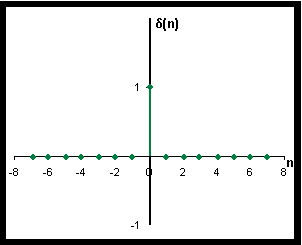 | También en el conjunto de las señales discretas existe la Señal Impulso, la cual se define y representa gráficamente de la siguiente manera: | ||||||